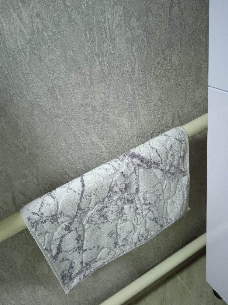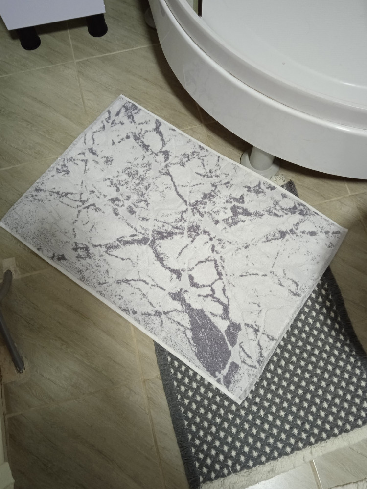 Красивый, приятный на ощупь коврик. Как плотное полотенце для ног. Стирается хорошо. Качество отличное, 100% хлопок.