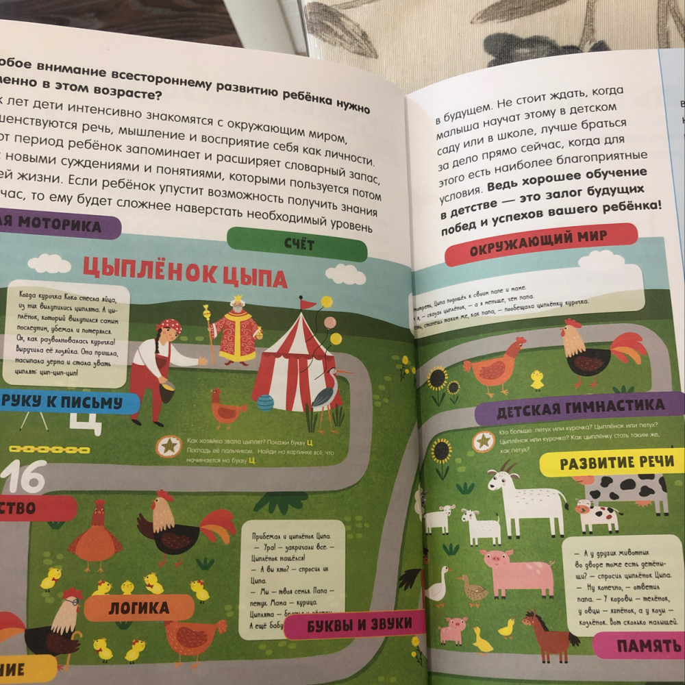 Неплохое пособие. Дети разные, но для моей дочки 4,5 года достаточно легко все, многое пройденный материал, но ничего повторение не помешает и главное как подать. Но много и того, что можно обсудить. Мне больше всего понравилось то, что нужно пересказывать истории и можно придумывать свои, что-то менять, например конец сказки или характер героев. Много тем для обсуждения. В общем, рекомендую.