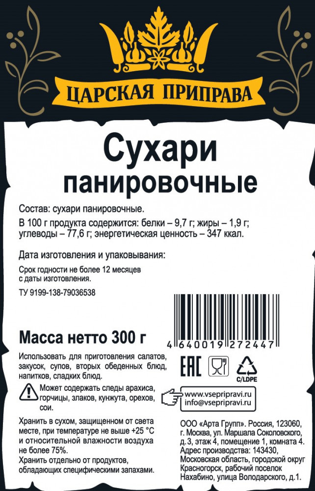 Царская приправа Сухари панировочные