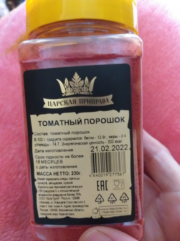 Томатный порошок удобен, если закончилась томатная паста. Но на вкус нам не понравилась, в блюде не чувствуются томаты. А так всё пришло целое, как в описании. Спасибо Флип за доставку