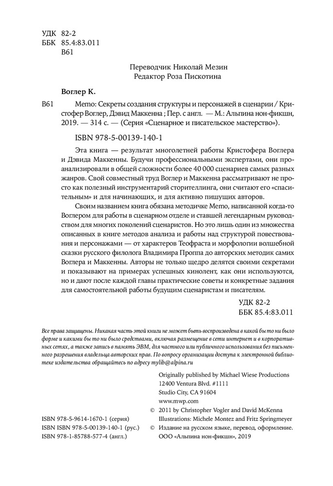 Memo. Секреты создания структуры и персонажей в сценарииКристофер Воглер, Дэвид Маккенна -20% +108 разборы сценариев рабочий шаблон полезная книга для писателей