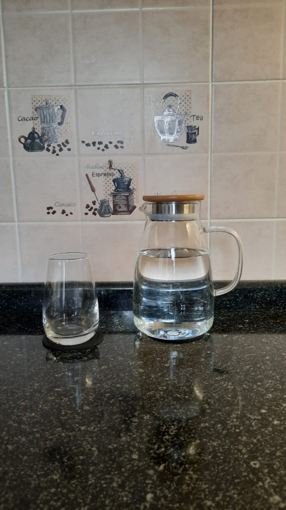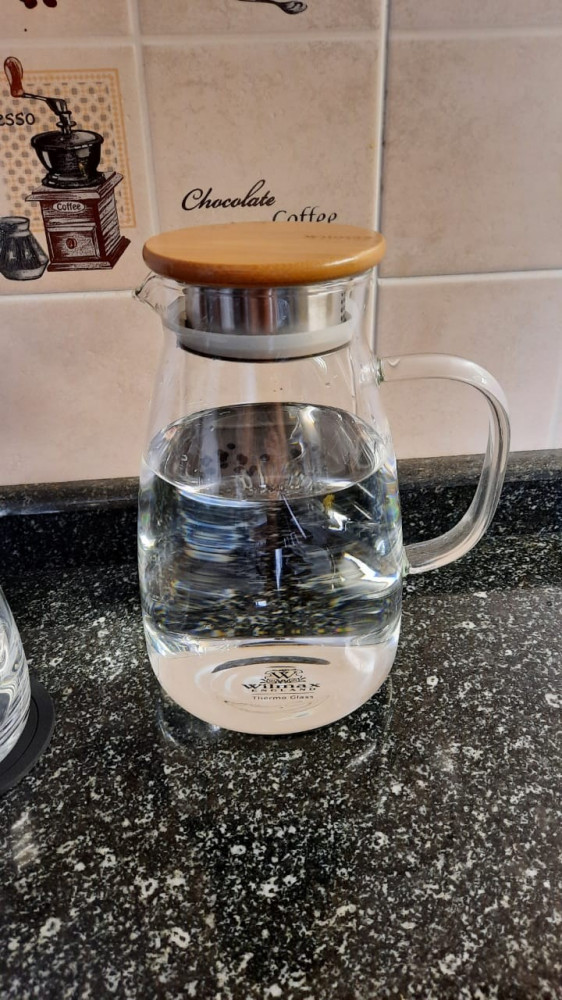 Красивый, удобный кувшин! 1,9 л - отличная вместительность. Крышка из стали и дерева. Термостекло. Стоит своих денег.