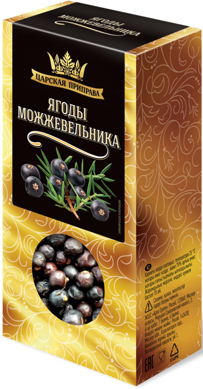 Очень хорошие ягоды можжевельника. Ягоды можжевельника содержат антиоксиданты, которые помогают защищать клетки от свободных радикалов. Можжевельник уменьшает воспаления в организме, что способствует поддержанию нормальной функции иммунной системы. Продукт полезен при сахарном диабете, кожных заболеваниях и отёках. Противопоказан при беременности, гастритах, язвенных болезнях, почечной недостаточности. Ягоды можжевельника хорошее дополнение при консервации овощей, квашении капусты, также для приготовления блюд из мяса. Норма употребления плодов в пищу: не более 3-4 штук на 1 килограмм мясопродукта.