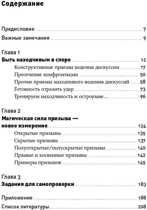 Но,данные техники хоть и применимы в простом общении но не являются необходимыми для 70% людей подумавших купить данную книгу. В книге описаны примеры в частности для деловых переговоров и встреч,простому же обывателю они могут показаться обыденными ,что так и является,читая вы можете заметить что что-то да и применяете в жизни уже давно. Вывод: книга полезна больше менеджерам и тем кто проводит часты споры и дискуссии простому обывателю тоже полезно что-то подчеркнуть для своего общения но нет обязательна