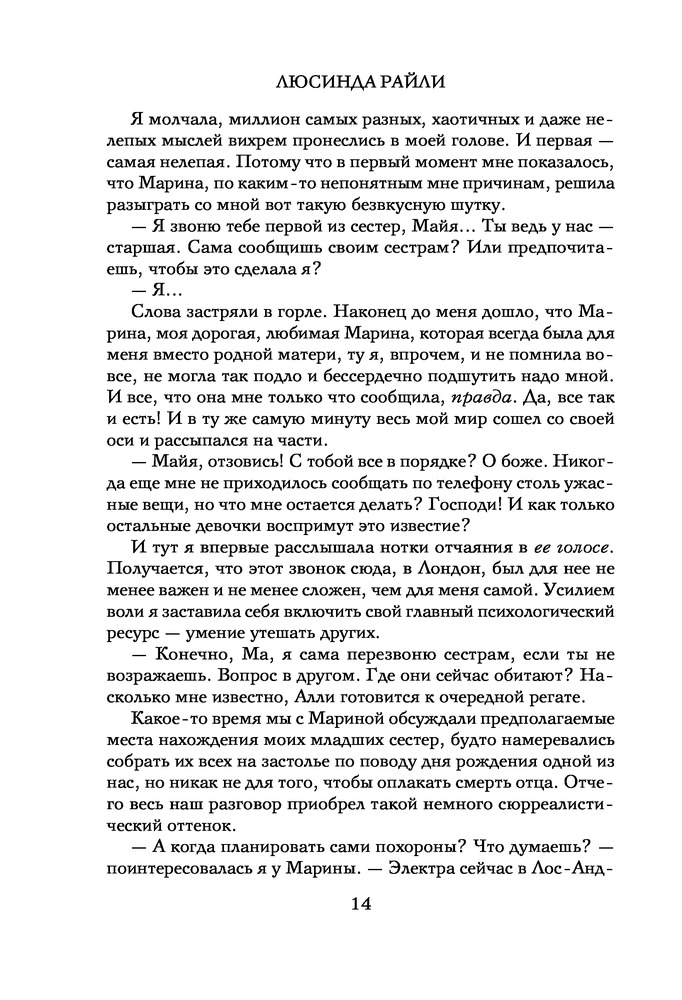 Здравствуйте! Спасибо за быструю доставку. Качество книги отменное. Роман захватывает с первых строк. В конце книги автор пишет о том, что это серия из семи книг, посвященная каждой из сестер. В первой книге остались еще невыясненные секреты Майи. Думаю, что в последующих книгах будет написано. Ждем новых книг из серии. Удачи Flip!!!