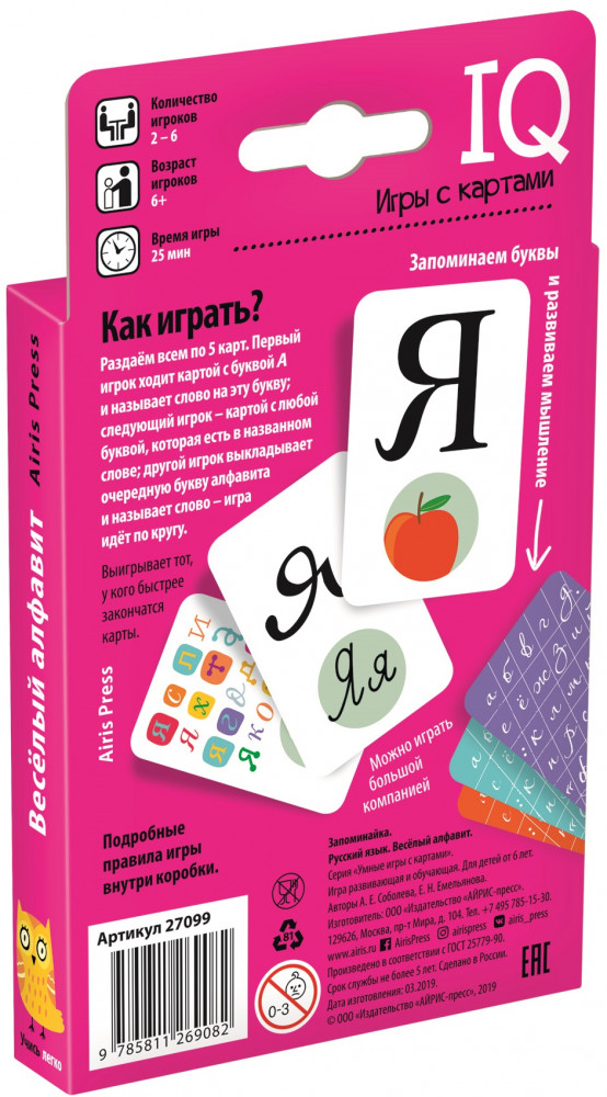 • 33 карты с печатными буквами и картинками на все буквы;