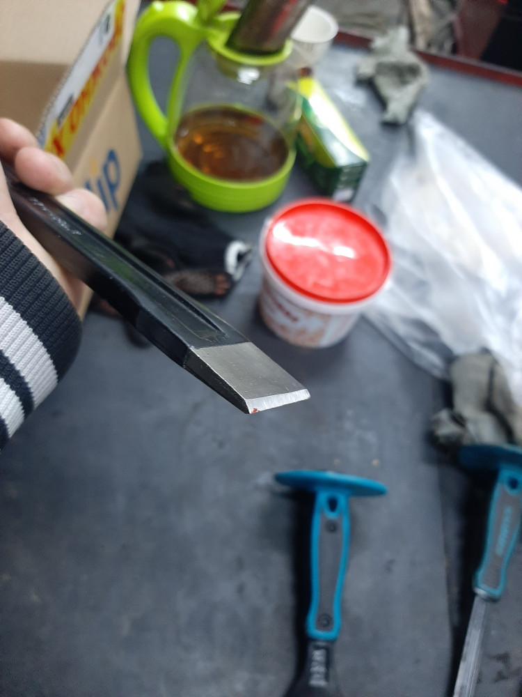 Отличный товар!!! Не стал сразу писать отзыв, решил сначала протестировать. Хотя, изначально было ощущение, что в руке добротный инструмент. Немного постучав полукувалдой по нему, расклинивая и прорубая проход надрезанному предмету - сделал фото. Зубило не согнулось, только краску размолотило))) Сразу заказал из этой серии остальные виды. Очень уж понравились. Всем слесарям рекомендую!