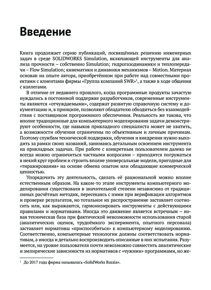Solidworks Simulation и FloEFD. Практика, методология, идеологияАлямовский Андрей Александрович В данный момент этот товар отсутствует в продаже. Возможно, у нас найдется аналогичный или похожий товар здесь. Книга продолжает серию публикаций, посвящённых решению инженерных задач в среде SOLIDWORKS Simulation, включающей инструменты для анализа прочности — собственно Simulation; гидрогазодинамики и теплопередачи — Flow Simulation; кинематики и динамики механизмов — Motion. Материал основан на практическом опыте автора. Каждая глава посвящена отдельному объекту, представляющему определённый класс конструкций и обладающему методической ценностью. Изложение начинается с постановки задачи, затем следует анализ с точки зрения пригодности имеющихся инструментов. Подробно описаны построение расчётной модели в рамках реального технического задания, вычислительный процесс, получение результатов, их анализ и интерпретация. |
