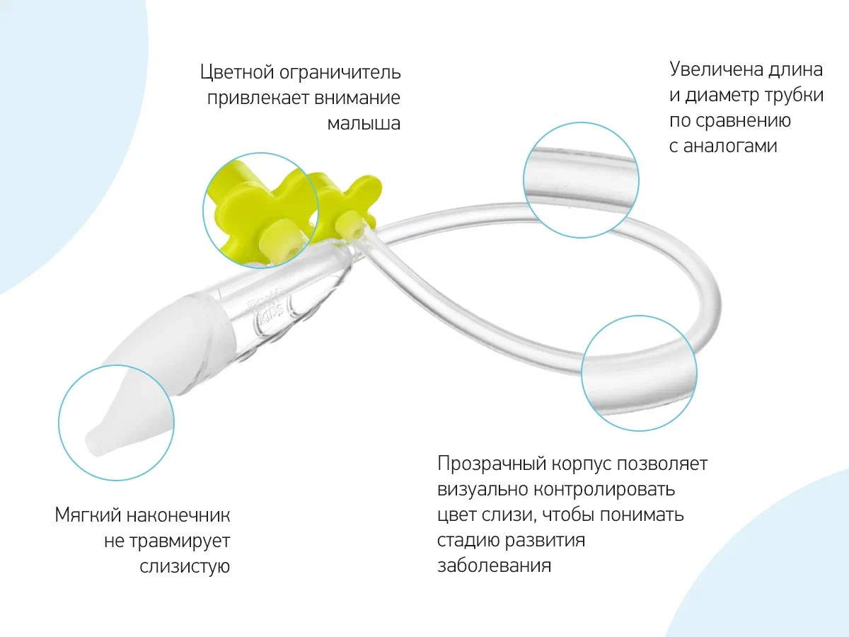 • в комплекте — мягкий мешочек для компактного хранения, в нем вы всегда сможете взять аспиратор в дорогу.