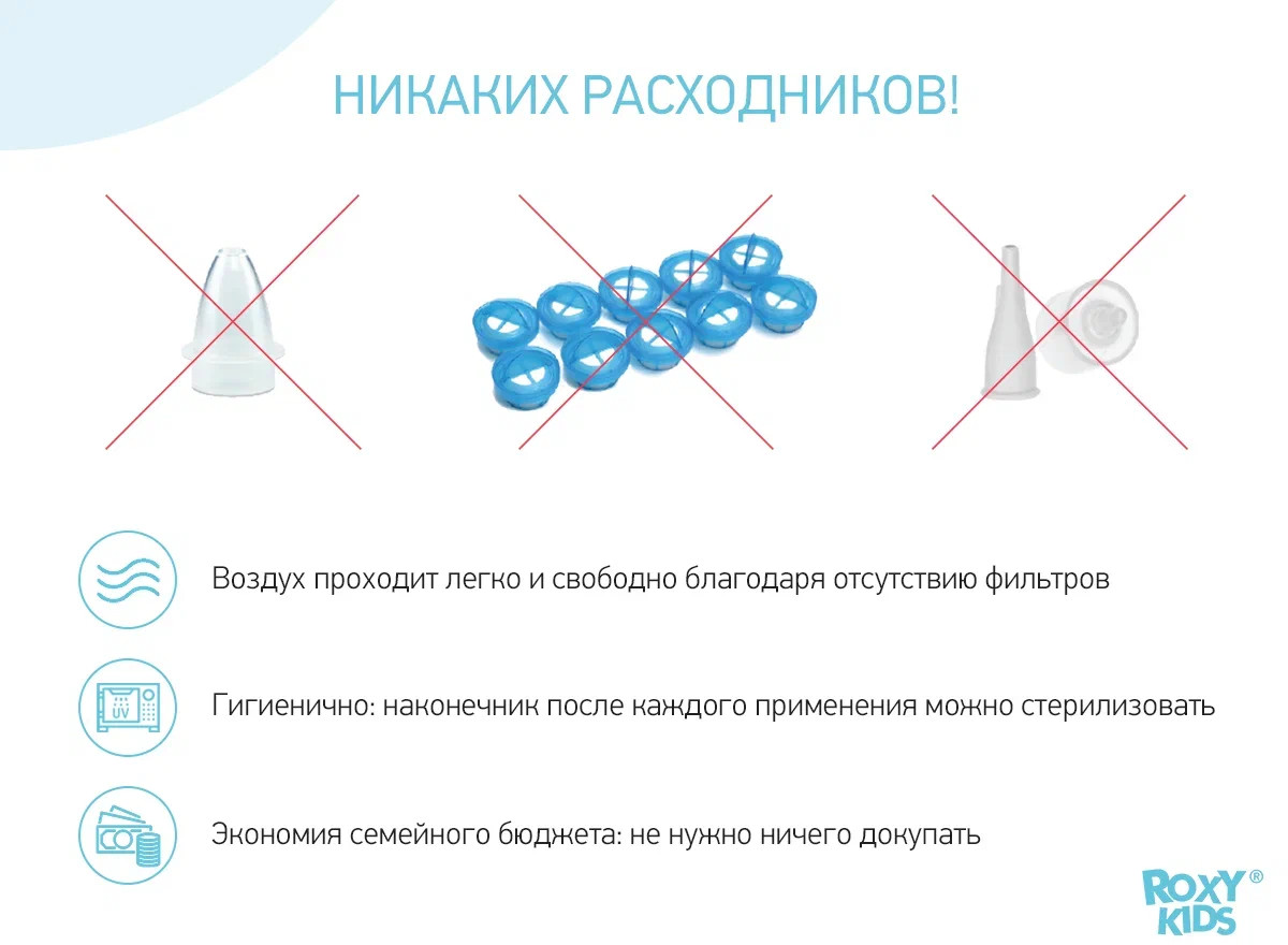 В данный момент этот товар отсутствует в продаже. Возможно, у нас найдется аналогичный или похожий товар здесь. Аспиратор назальный с мягким наконечником — уникальная разработка инженеров Roxy-kids с запатентованной конструкцией. Этот прибор легко и быстро поможет избавить носик вашего ребенка от заложенности. Чтобы воспользоваться аспиратором, поднесите мундштук к губам, а мягкий наконечник к носовому проходу малыша. Плавно вдохните, чтобы вытянуть слизь из носа. Повторите с другой ноздрей. Прозрачный корпус позволит сразу же оценить результат. Аспиратор Roxy-kids поможет эффективно очистить нос ребенка и вернет вашему карапузу радость дыхания!