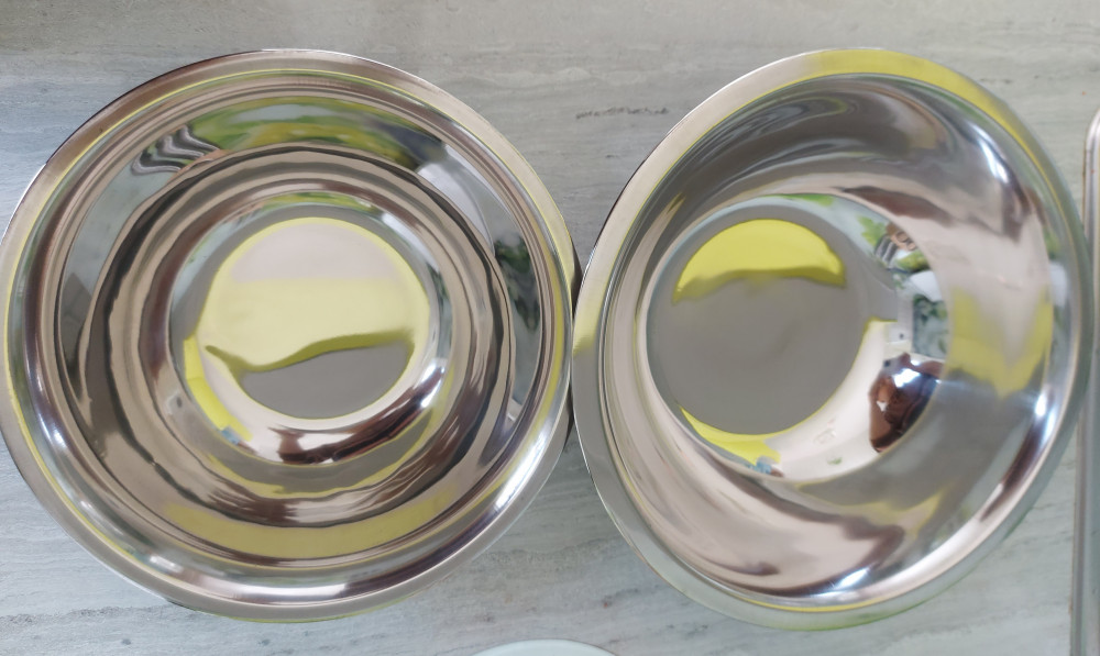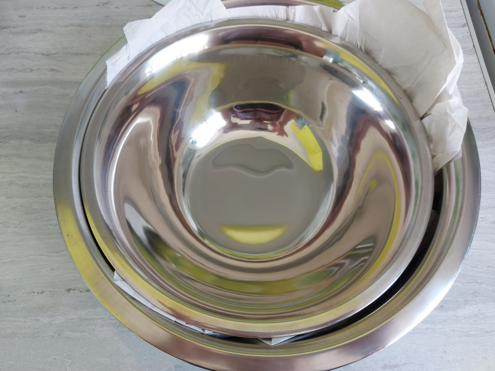 Чашки отличные, пр-во Индия, взяла в d 24 и 28. Бортики аккуратные,d 24 позволяет накрывать сверху d 28, как крышкой. Для замешивания теста, отличный вариант.