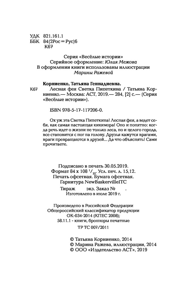 Лесная фея Светка ПипеткинаВ данный момент этот товар отсутствует в продаже. Возможно, у нас найдется аналогичный или похожий товар здесь. Серия: Веселые истории Ох уж эта Светка Пипеткина! Лесная фея, а ведет себя, как самая настоящая кикимора! Оно и понятно: когда речь идет о жизни не только леса, но и целого города, все становится с ног на голову. Друзья кажутся врагами, враги превращаются в друзей... Да что объяснять! Сами прочитаете. |