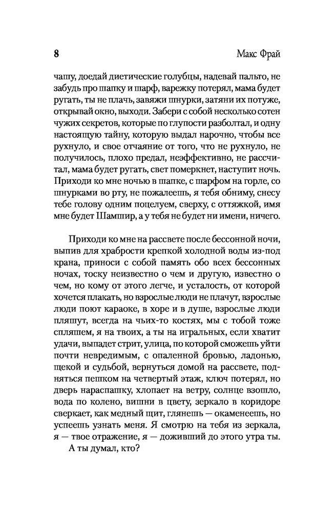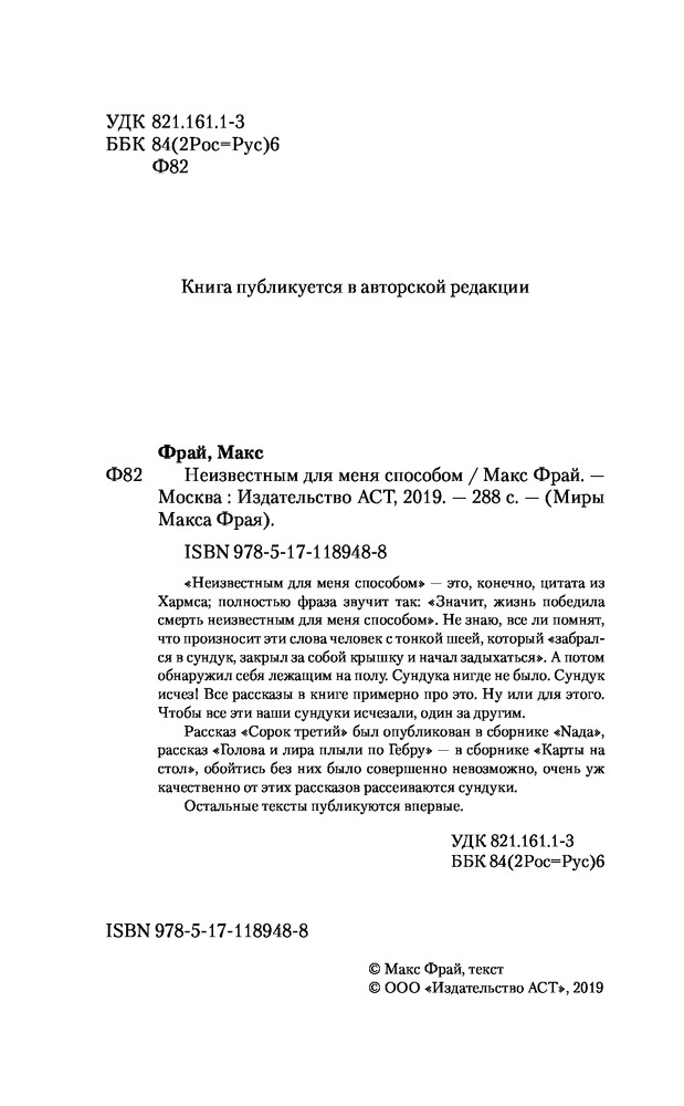 💳 Оплатить за товар можно при получении 🇰🇿 Есть бесплатная доставка по Казахстану от 1 дня 🎁 Копите бонусы с каждой покупки Серия: Миры Макса Фрая Представьте себе человека, который сначала сам, по собственному желанию залезает в сундук и закрывает крышку. А потом начинает в этом сундуке задыхаться. И когда приступ клаустрофобии доводит его до полного истощения, он вдруг открывает глаза и понимает: сундука-то нет! Он исчез, и человек просто лежит на полу. Все рассказы в книге примерно про это. Ну или для этого. Чтобы все эти ваши сундуки исчезали, один за другим. Рассказ «Сорок третий» был опубликован в сборнике «Nада», рассказ «Голова и лира плыли по Гебру» — в сборнике «Карты на стол», обойтись без них было совершенно невозможно, очень уж качественно от этих рассказов рассеиваются сундуки. |