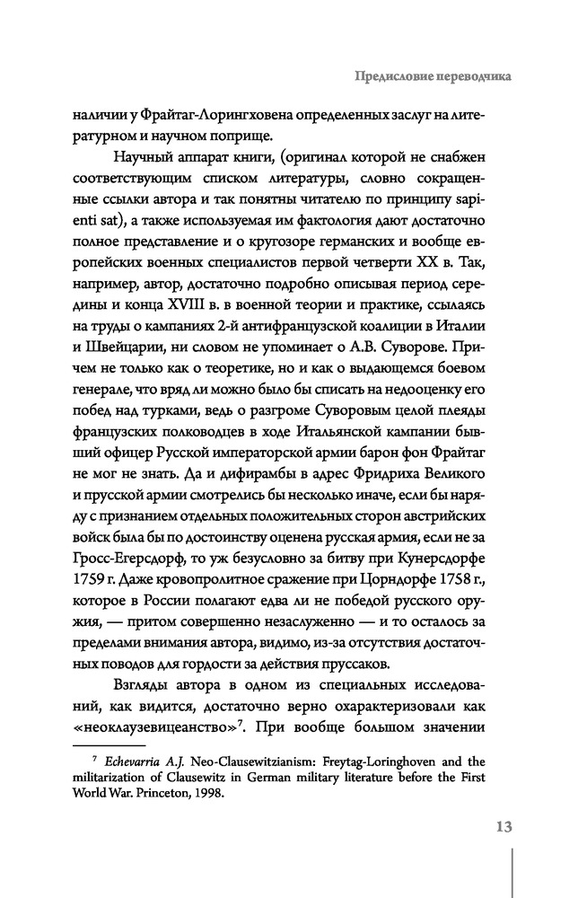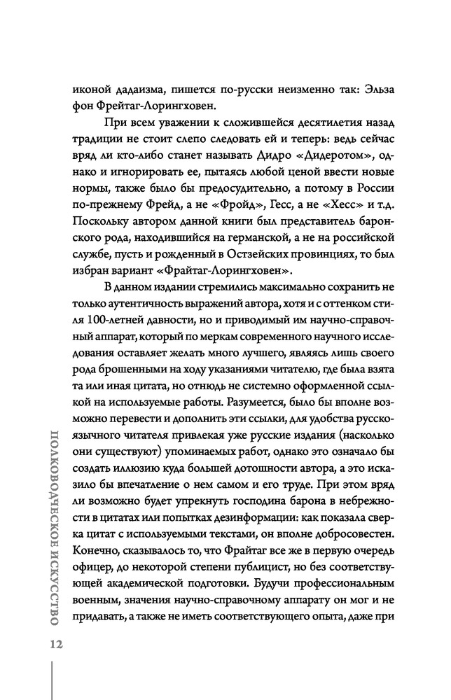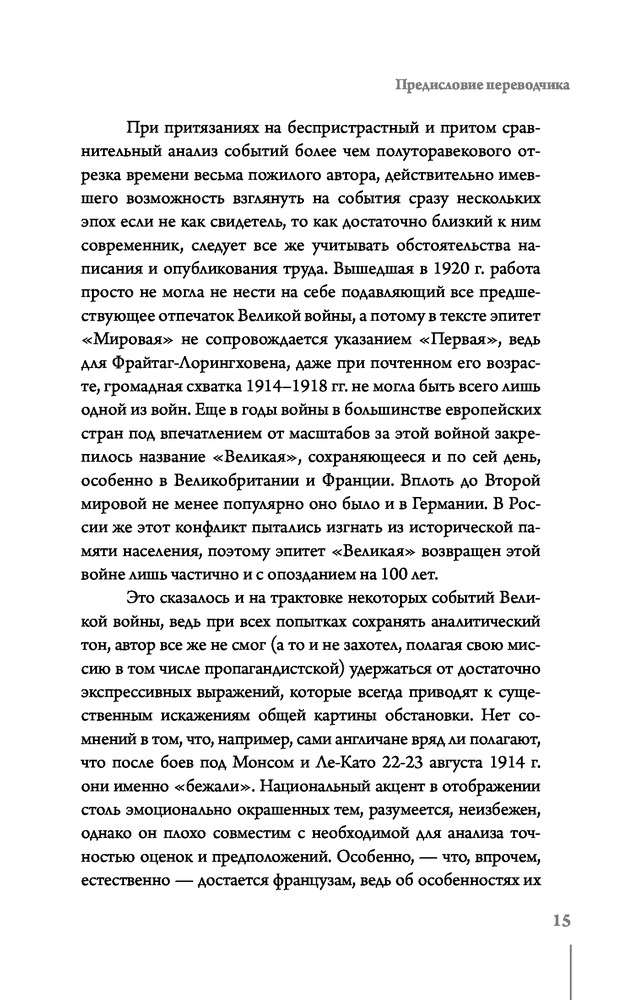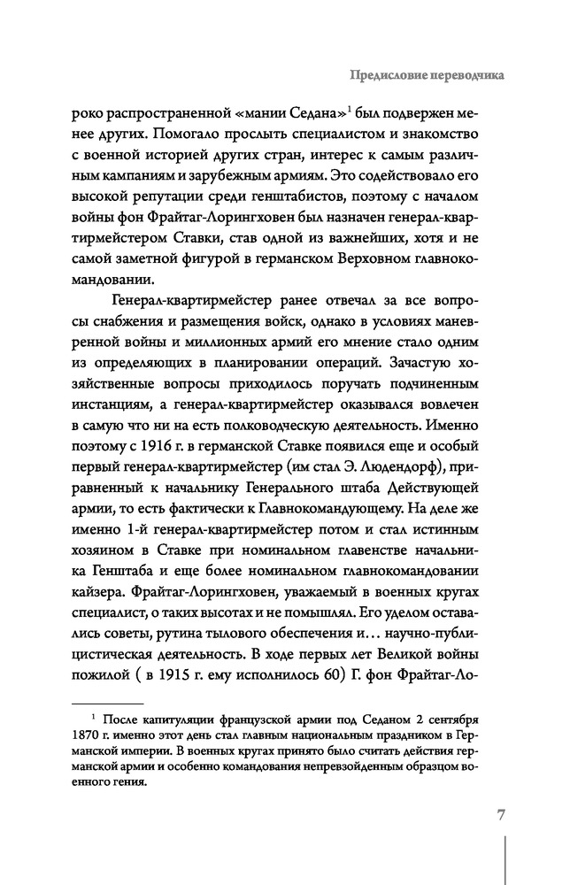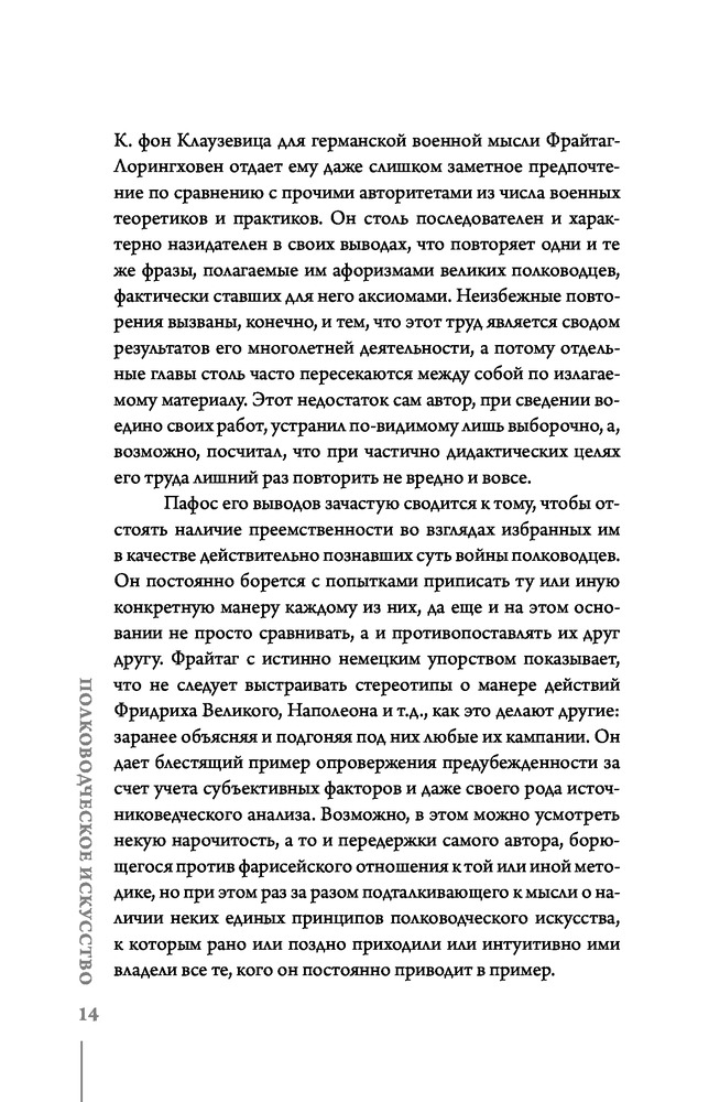 Военный писатель, публицист, преподаватель и прусский генерал от инфантерии барон Гуго Фридрих Филипп Иоганн фон Фрайтаг-Лорингховен (1855-1924) в начале ХХ в. считался одним из ведущих германских военных мыслителей, причем не только по историческим проблемам, но и по актуальным вопросам военного строительства. Его труд «Полководческое искусство» стал итогом всей военно-исторической деятельности автора и своего рода энциклопедией военного дела XVIII — начала XX в.