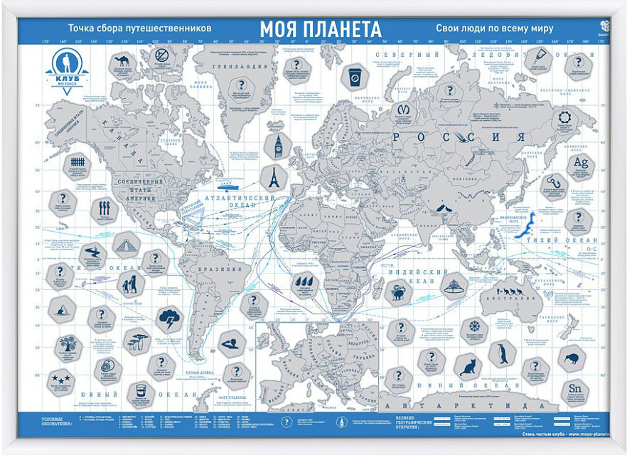💳 Оплатить за товар можно при получении 🇰🇿 Есть бесплатная доставка по Казахстану от 1 дня 🎁 Копите бонусы с каждой покупки Специальное издание популярной скретч-карты мира. Карта и тубус оформлены в узнаваемом стиле клуба и телеканала «Моя Планета». Скретч-карта содержит массу интересных вопросов и ответов в виде интерактивной викторины. Вся информация для скретч-карты Мира подготовлена клубом «Моя Планета», что делает карту такой-же интересной и как и полюбившиеся передачи на любимом теле-канале. Карта Мира покрыта серебряной, стирающейся скретч-краской в стильном, цилиндрическом тубусе, с металлическими крышками, окрашенными в цвет тубуса. Стирая серебряную краску с территории посещенной страны, Вы делаете ее цветной и заодно открываете много новых и интересных фактов. Скретч-карта «Моя Планета» долгожданный подарок для всех тех, кто не стоит на месте! |