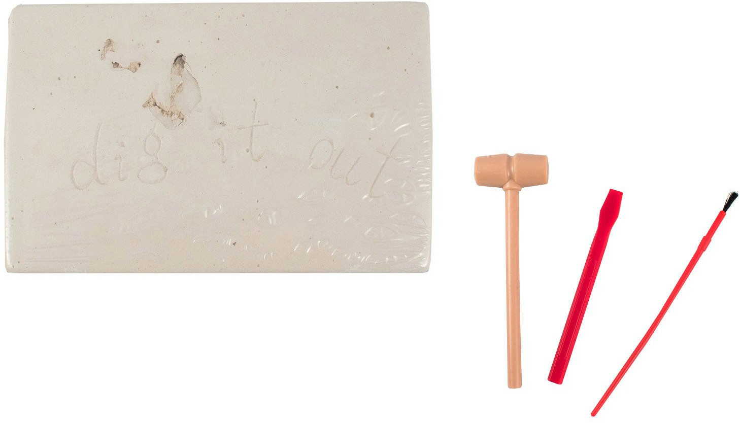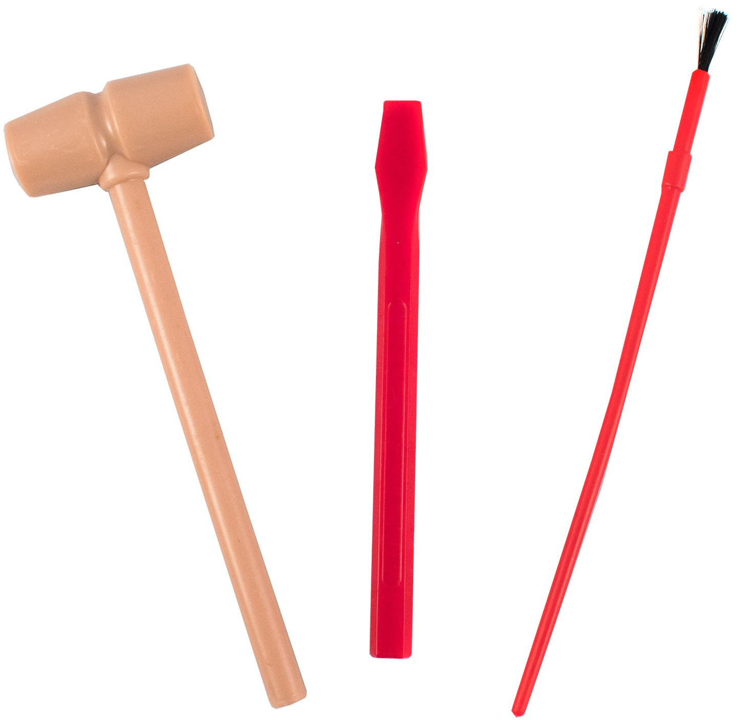 • орудуя стамеской, молоточком и кисточкой, необходимо извлечь части скелета трицератопса из гипсового блока;