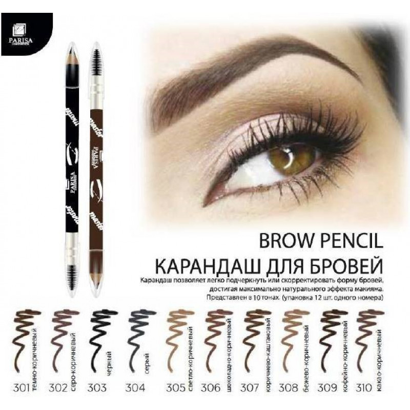 Parisa Cosmetics Карандаш для бровей, оттенок 301 Черно-коричневый