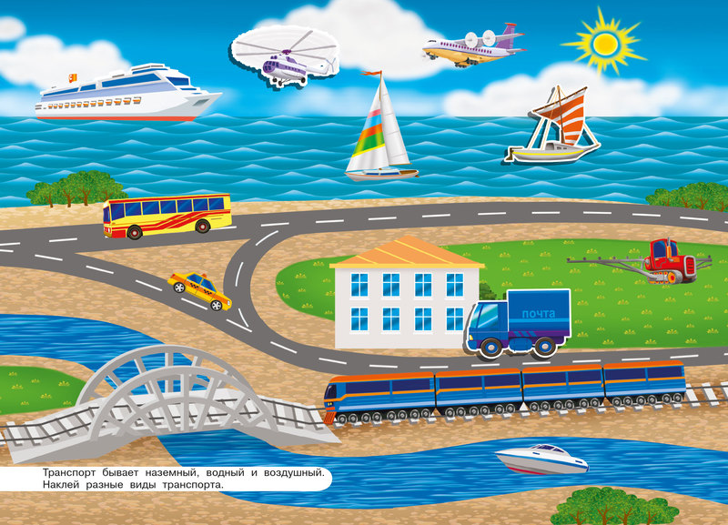 На каждом книжном развороте нарисованы определённые места использования различных видов транспортных средств, а специальная вставка содержит красочные многоразовые наклейки с изображениями воздушного, водного и наземного транспорта. Наклейки привлекут внимание Вашего малыша и станут увлекательным элементом игры во время совместных занятий. Прочитайте ему поясняющий текст задания, а он сможет сам подобрать подходящую по теме наклейку.