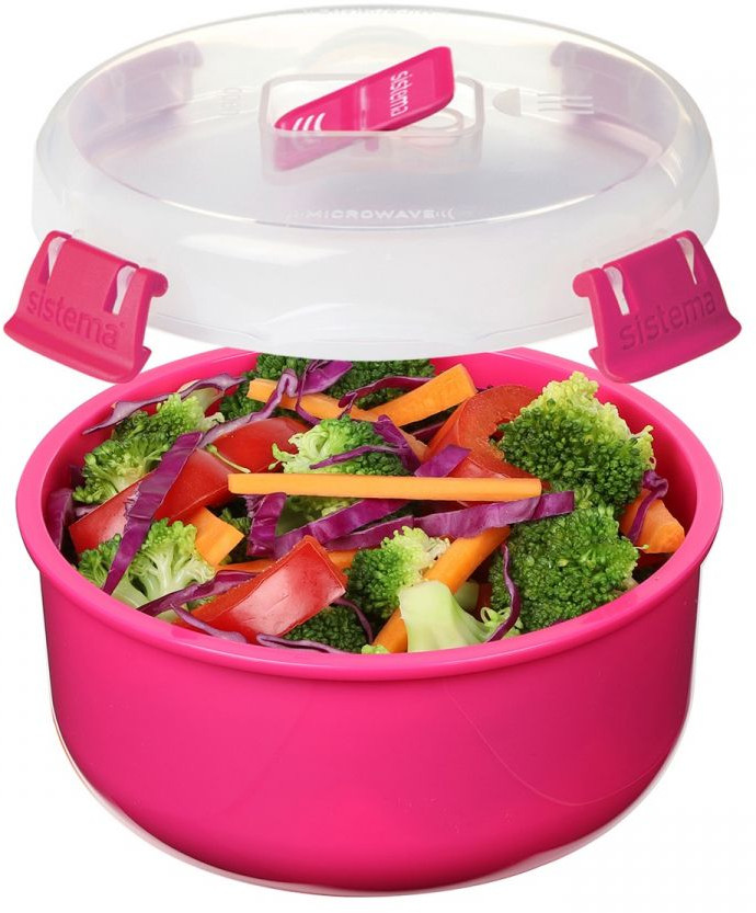 Контейнер для использования в микроволновой печи. Предназначен специально для приготовления и подогрева готовых обедов. Отсутствие брызгов в микроволновой печи — паровыпускное отверстие. Имеет удобные ненегревающиеся ручки. Подходит для использования в холодильнике и морозильной камере. Плотное закрытие — фирменные защелки Sistema. Легко моется — можно мыть в посудомоечной машине.