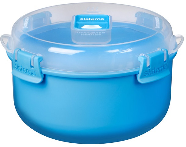 Контейнер для использования в микроволновой печи. Предназначен специально для приготовления и подогрева готовых обедов. Отсутствие брызгов в микроволновой печи — паровыпускное отверстие. Имеет удобные ненегревающиеся ручки. Подходит для использования в холодильнике и морозильной камере. Плотное закрытие — фирменные защелки Sistema. Легко моется — можно мыть в посудомоечной машине.