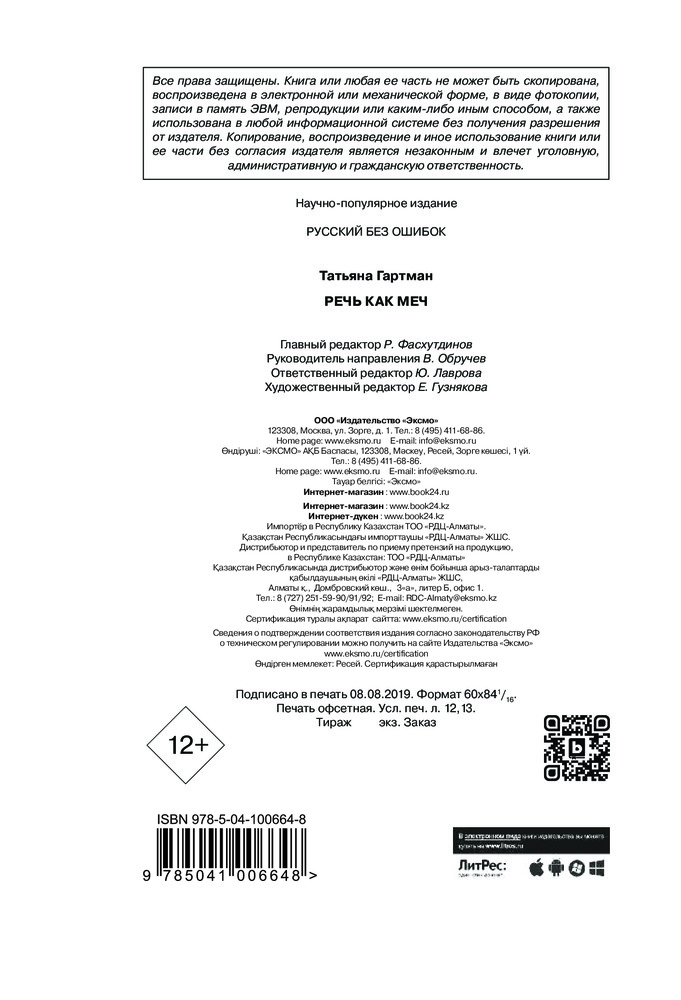 💳 Оплатить за товар можно при получении 🇰🇿 Есть бесплатная доставка по Казахстану от 1 дня 🎁 Копите бонусы с каждой покупки Серия: Русский без ошибок Грамотная речь давно стала большой редкостью. Кроме книги найти правильный русский язык просто негде. В процессе общения люди часто не утруждают себя правильным произношением. В своей книге, посвященной устной речи, Татьяна Гартман, известный видеоблогер (Училка vs ТВ), ведет работу над ошибками речи, взятыми из реальной жизни, и учит правильно и грамотно пользоваться русским языком. |