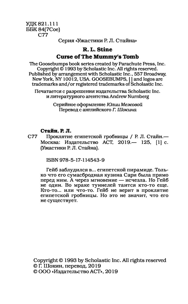 💳 Оплатить за товар можно при получении 🇰🇿 Есть бесплатная доставка по Казахстану от 1 дня 🎁 Копите бонусы с каждой покупки Серия: Ужастики Р. Л. Стайна Здесь затаилась смерть... Гейб заблудился в... египетской пирамиде. Только что его сумасбродная кузина Сари была прямо перед ним. А через мгновение — исчезла. Но Гейб не один. Во мраке туннелей таится кто-то еще. Кто-то... или что-то. Гейб не верит в проклятие египетской гробницы. Но это не значит, что его не существует. |