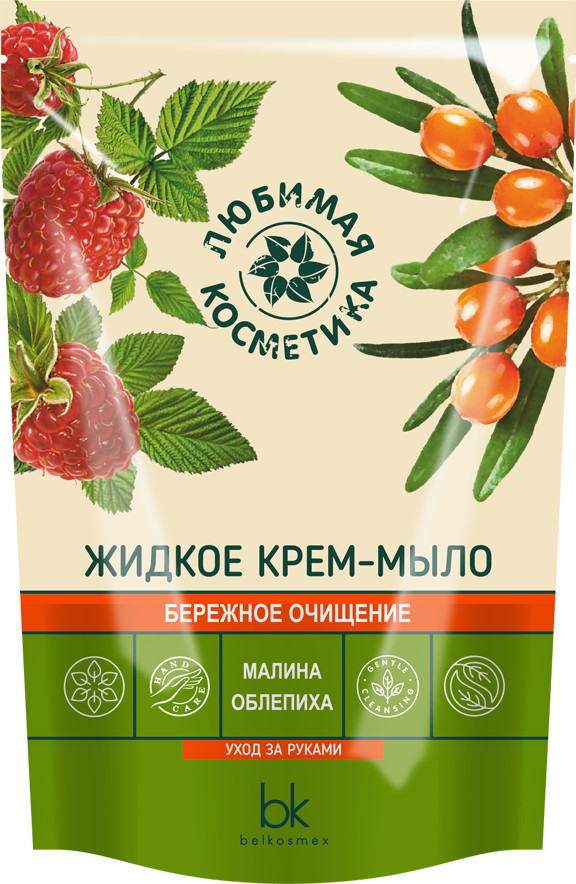 Belkosmex Крем-мыло жидкое с экстрактами малины и облепихи «Бережное очищение»