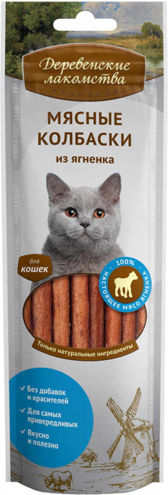 Деревенские лакомства Мясные колбаски из ягненка для кошек-20% +37 вкус мясной запах мягкая консистенция срок годности поедаемость
