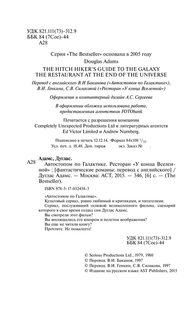Автостопом по Галактике. Ресторан "У конца Вселенной"+128 юмор легко читается интересный сюжет качество печати оформление