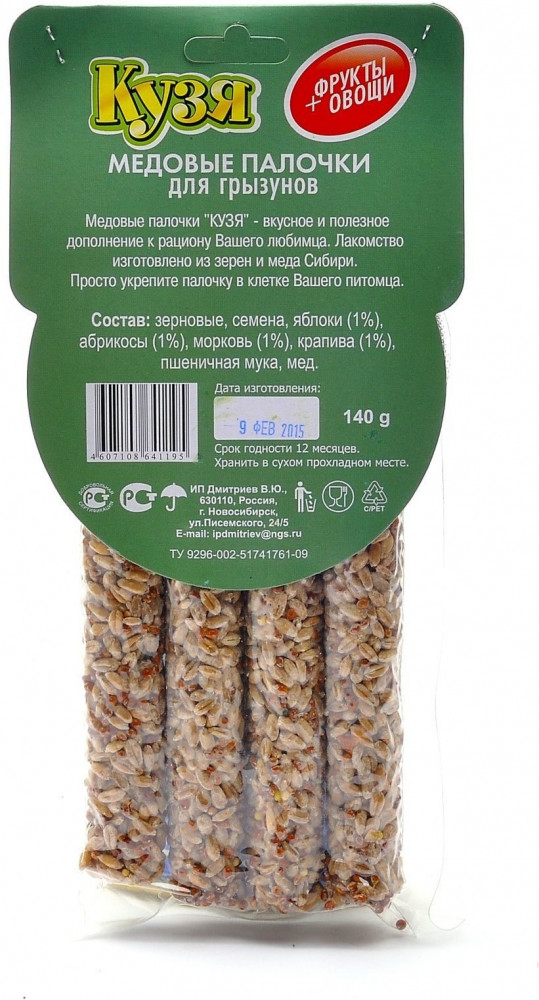 Кузя Палочка медовая для грызунов «Фрукты и овощи»+50