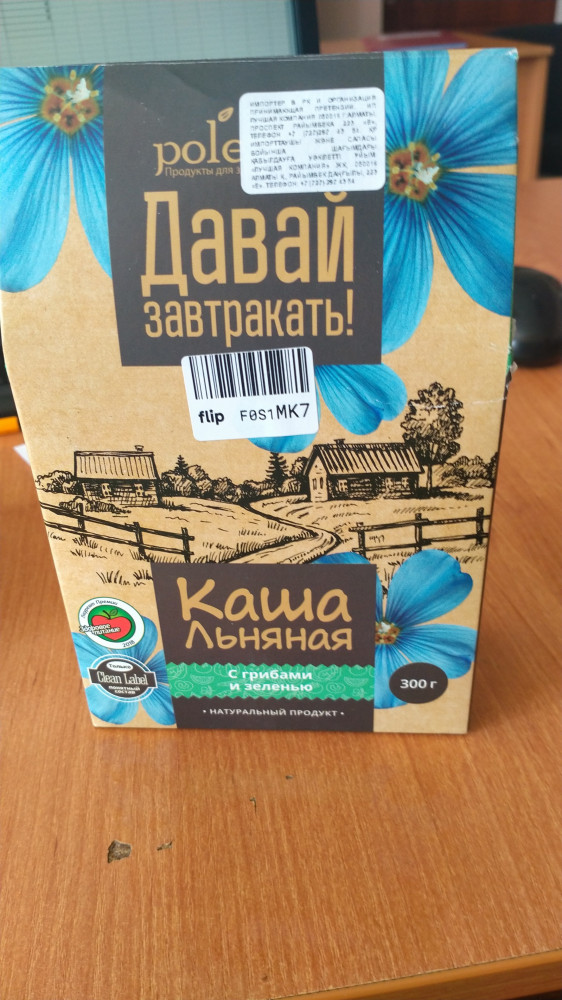В принципе приличная каша льняная «с грибами и зеленью». Немного изменил схему приготовления. Налил пол стакана кипятка, туда всыпал 3 ложки сухого концентрата, и тщательно перемешал. Как вариант добавил консервированные резанные шампиньоны. И стало ещё веселее.