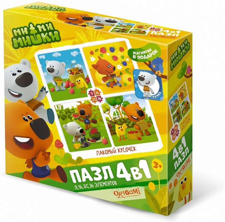 Набор пазлов 4 в 1 «Лакомый кусочек» — это комплект пазлов с разной элементностью, включающий в себя головоломки из 9, 16, 25, 36 элементов, объединенных общей тематикой. Это необычная коллекция картинок с изображением любимых персонажей мультфильма «Ми-Ми-Мишки», которая понравится любому ребенку.