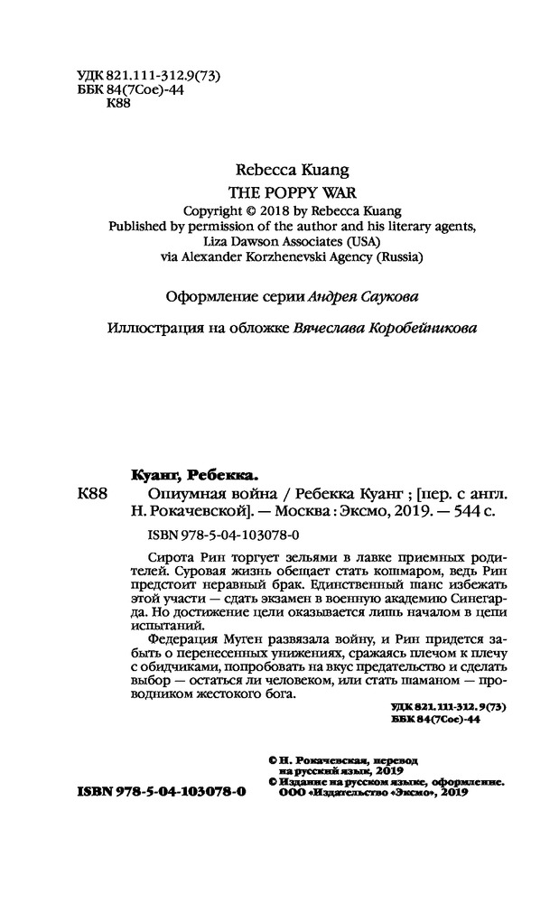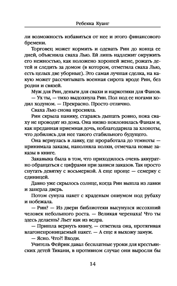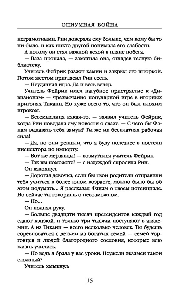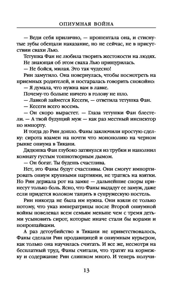 Опиумная войнаВ данный момент этот товар отсутствует в продаже. Возможно, у нас найдется аналогичный или похожий товар здесь. Серия: Наш выбор Когда Рин блестяще сдала Кэцзюй, общеимперский экзамен по отбору талантливой молодежи для учёбы в Академиях, это стало шоком для всех: для экзаменаторов, которые не могли поверить, что сирота из Петушиной провинции смогла пройти без обмана; опекунов Рин, которые верили, что наконец-то смогут отдать её замуж с выгодой для своего преступного бизнеса; и для самой Рин, которая внезапно освободилась от рабского труда и отчаяния, составлявшего её повседневное существование. То, что она попала в Сайнгард, самую элитную военную школу в Никане, стало ещё большим сюрпризом. Но сюрпризы бывают не только добрыми. Потому что темнокожей крестьянке-южанке в Сайнгарде приходится нелегко. Преследуемая с самого начала одноклассниками за цвет своей кожи, бедность и пол, Рин обнаруживает, что обладает смертоносной, неземной силой — способностью к почти мифическому искусству шаманизма. |