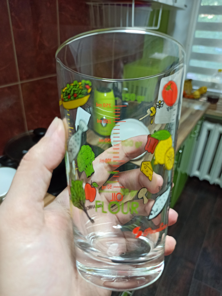 Прекрасно в мерном стакане замерять молоко, воду и растительное масло, используем часто в кулинарии и при консервировании