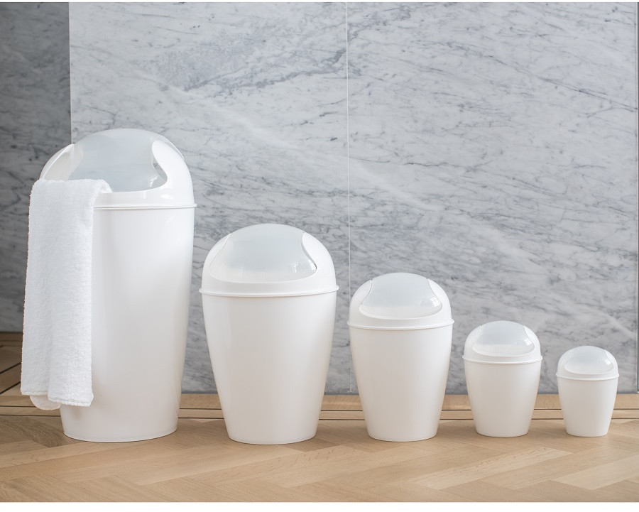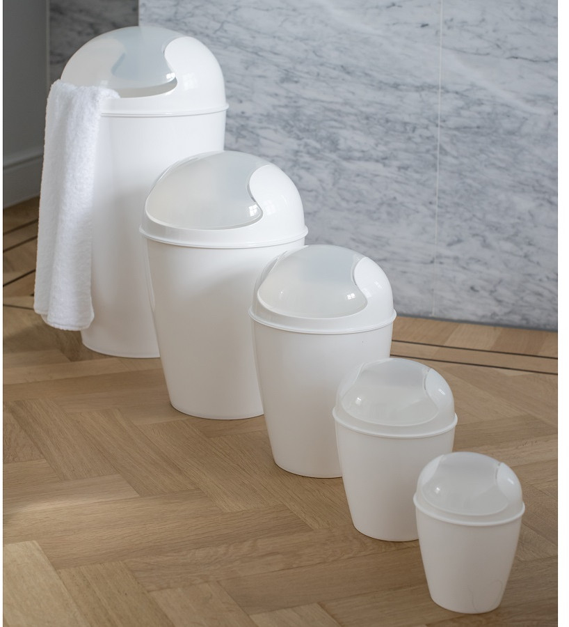 Понравилось мусорное ведро фирмы Umbra, Канада. Модное, очень удобное в применении, внешне выглядит маленьким из-за удлиненной формы, но мусора вмещается как в обычное мусорное ведро. Есть ручка в виде отверстия в верхней части ведра, что очень удобно. Полипропилен прочный, упругий. Жаль, что не было выбора по цвету - только белое и черное. Хотя такая мелочь - мусорное ведро, которое не должно быть на виду, тоже должно быть красивым и цветным.