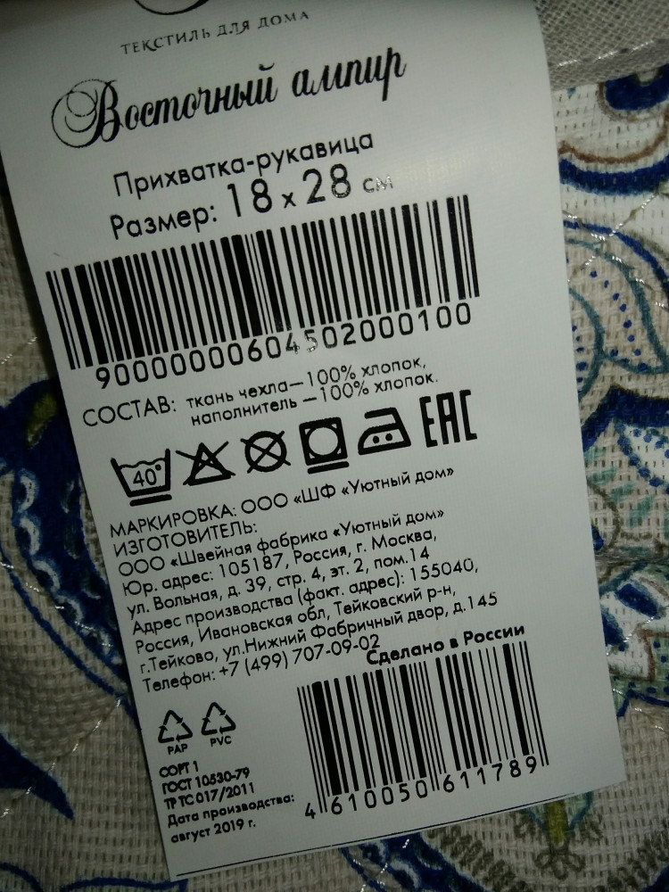 Романтика Прихватка-рукавица «Восточный ампир»В данный момент этот товар отсутствует в продаже. Возможно, у нас найдется аналогичный или похожий товар здесь. Серия: Гретта Прихватка-рукавица — незаменимый помощник на любой кухне. Варежка выполнена из качественного текстиля и оформлена красивым рисунком. Варежка мягкая, удобная и практичная. С ее помощью можно доставать горячие противни из духовки, она защитит ваши руки и предотвратит появление ожогов. Красочный дизайн позволит красиво дополнить интерьер кухни. |