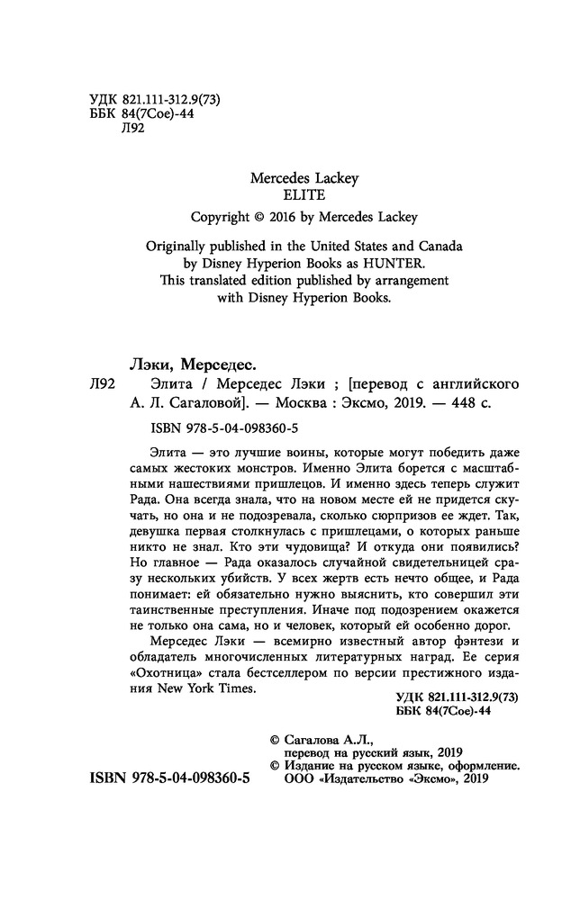 ЭлитаВ данный момент этот товар отсутствует в продаже. Возможно, у нас найдется аналогичный или похожий товар здесь. Серия: Охотница. Фэнтези Мерседес Лэки Элита — это лучшие воины, которые могут победить даже самых жестоких монстров. Именно Элита борется с масштабными нашествиями пришлецов. И именно здесь теперь служит Рада. Она всегда знала, что на новом месте ей не придется скучать, но она и не подозревала, сколько сюрпризов ее ждет. Так, девушка первая столкнулась с пришлецами, о которых раньше никто не знал. Кто эти чудовища? И откуда они появились? Но главное — Рада оказалось случайной свидетельницей сразу нескольких убийств. У всех жертв есть нечто общее, и Рада понимает: ей обязательно нужно выяснить, кто совершил эти таинственные преступления. Иначе под подозрением окажется не только она сама, но и человек, который ей особенно дорог. |