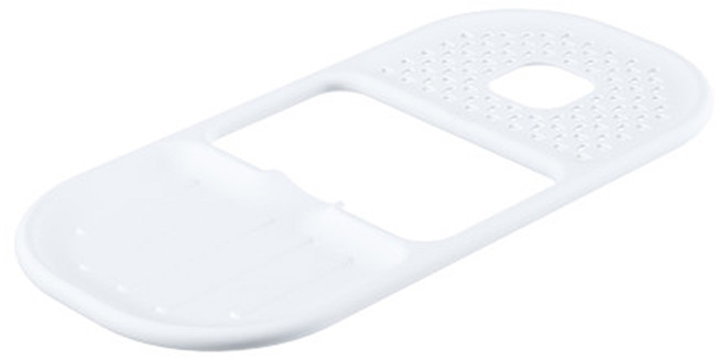 Органайзер можно использовать так, как показано на фото с сайта. На более широкий край, например ванну, он не подойдёт, держаться не будет, не хватит ширины. Да и сам он ничем не примечателен, матовый силикон выглядит дёшево что ли, не привлекательно.