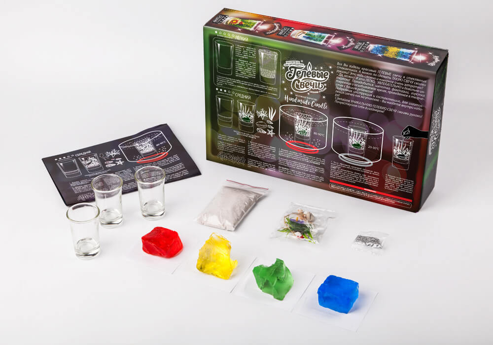 Подробная инструкция и составляющие, для изготовления свечей как на упаковке — Вы найдете внутри набора! Сделайте уникальную гелевую свечу своими руками! Почувствуйте себя дизайнером!