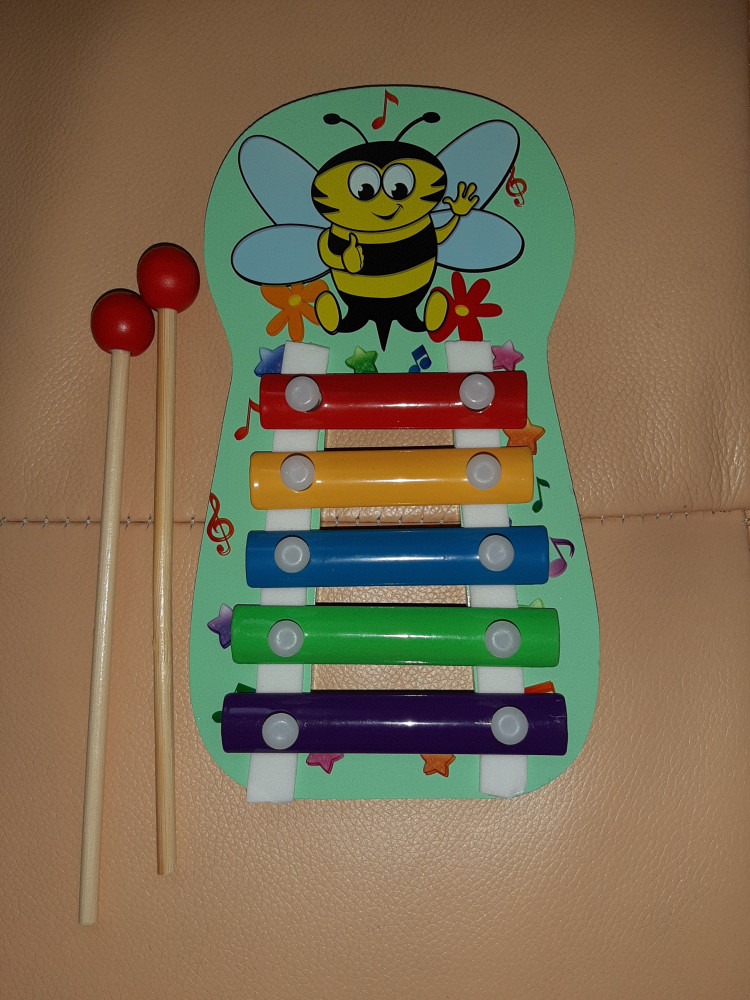 Решили доче взять ксилофон, потому что она любит ложкой стучать по стакану, тарелке и т.д. Ксилофон компактный, аккуратный, звук просто замечательный. Теперь доча играет на ксилофоне, а не на посуде.