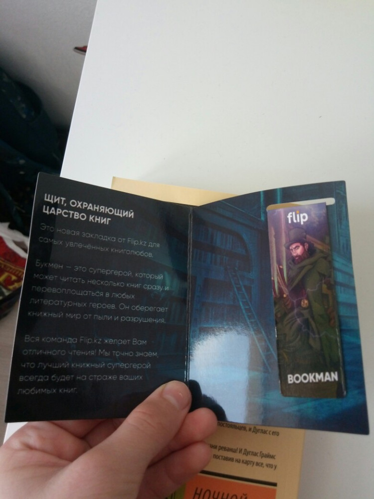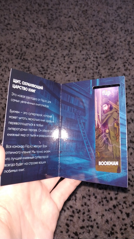 Закладка со своей историей, с супергероем Букменом, всё продумано. Замечательная идея и воплощение. Спасибо Флипу.