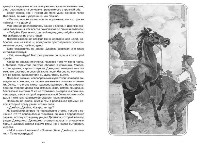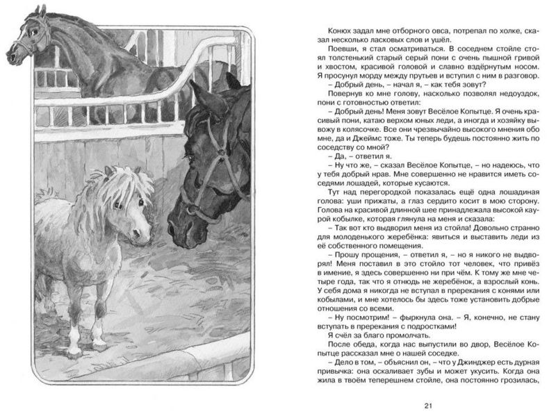 Красивая обложка, черно-белые картинки. Шрифт некрупный, но доча 8 лет с огромным удовольствием и на одном дыхании прочитала книгу за день. Очень полюбила главных героев повести -Джинджер и Черного Красавчика. Научилась понимать и сочувствовать животным. Книга достойная и стоящая прочтения. Она из фаворитов в ее библиотеке!!! Скорость доставки и тактичность, внимательность Ваших менеджеров - всё это заставляет меня всё чаще "ходить" к Вам за покупками. 🌷🌷🌷