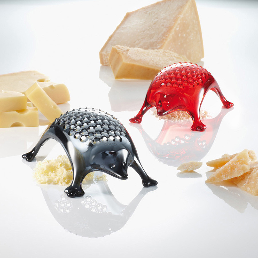Это эффектный и необычный аксессуар для современной кухни. Изделие представлено в виде изогнувшего спину ежа, стоящего на четырех лапках. Просто поставьте терку на стол и аккуратно потрите пармезан, гауду или любой другой сыр для вкусной пиццы, запеканок или пасты.