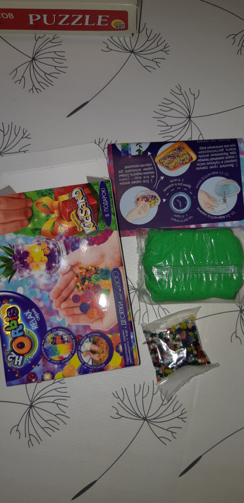 Увидев конечно размер коробки, я слегка была в шоке и думала, что потратили деньги на ветер. Но после вскрытия, оказался отличный кинетический песок, и куча орбизов. Остались конечно очень довольны))