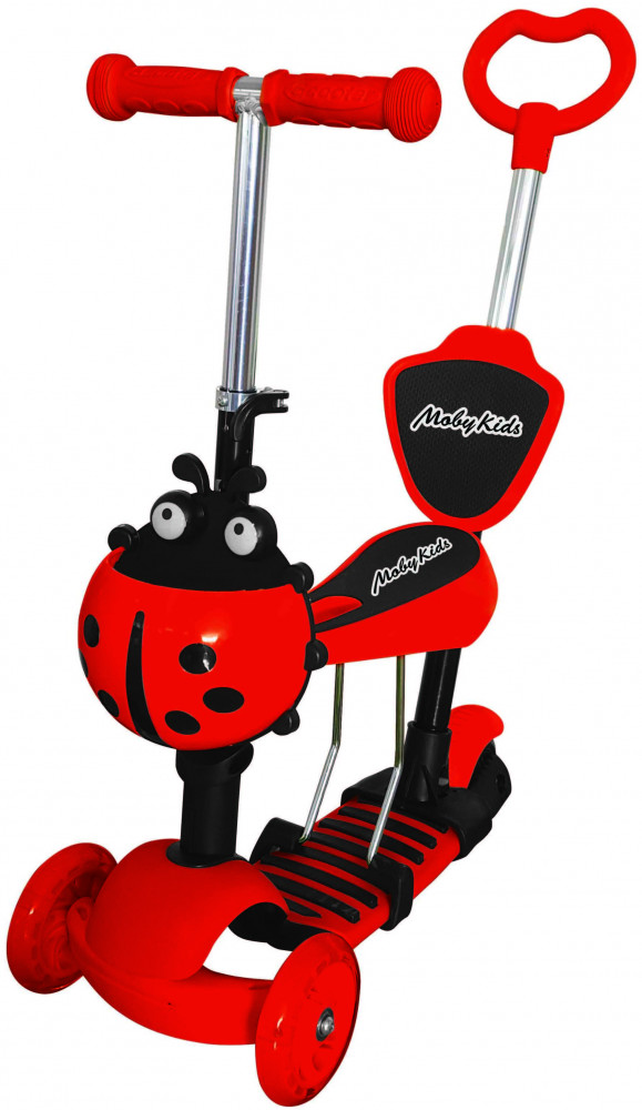 Самокат «Божья коровка» 3 в 1 представляет собой многофункциональное транспортное средство с оригинальным дизайном: