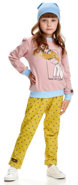 Тёплые и мягкие брюки из экологичного хлопкового футера обязательно понадобятся не только осенью, но и в любой прохладный день. Натуральный материал отлично согревает, отводит лишнюю влагу и обеспечивает нормальный теплообмен. В самых первых размерах предусмотрено дополнительное пространство между ножками, способное вместить даже наполненный подгузник. Модель выполнена в ярком горчичном цвете с набивным рисунком яблок и дополнена розовым поясом с симпатичным бантиком. Пояс мягко облегает животик малышки и надёжно удерживает брюки на талии.
