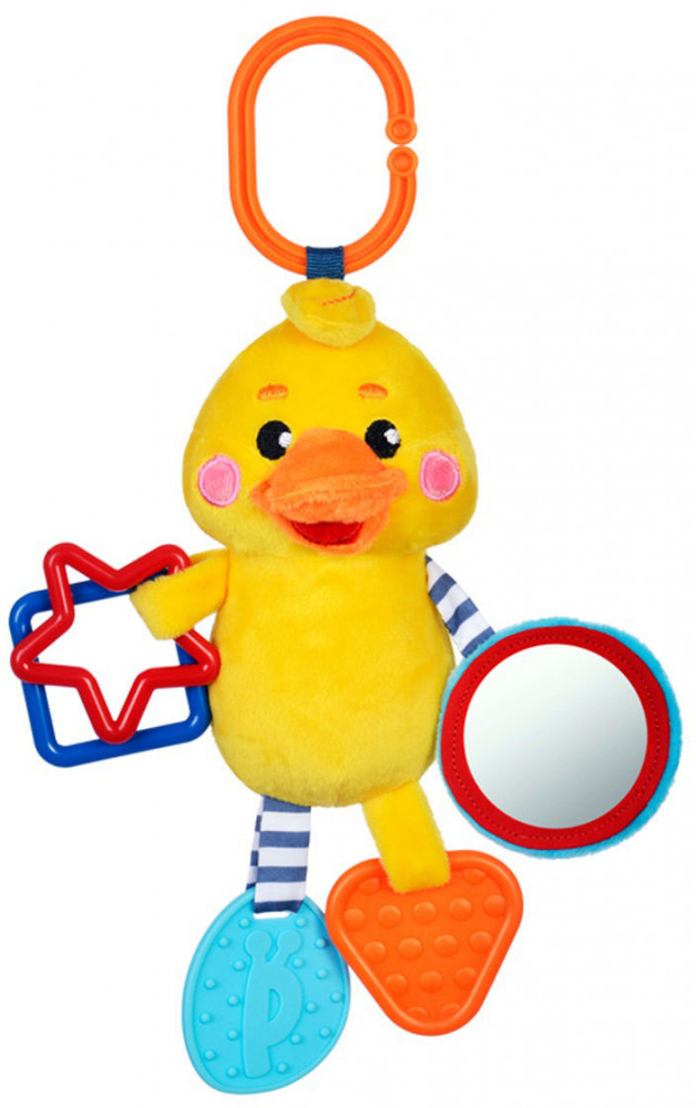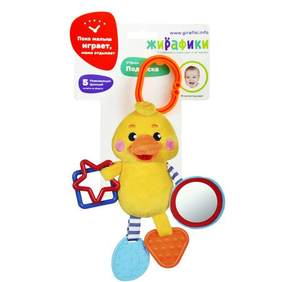 Жирафики Подвеска с силиконовым прорезывателем и зеркальцем «Утенок»В данный момент этот товар отсутствует в продаже. Возможно, у нас найдется аналогичный или похожий товар здесь. Этот красочный утёнок сшит из тканей разного цвета и разной фактуры. Гладкие, ворсистые и вязаные ткани использованы при создании элементов игрушки для развития тактильных ощущений малыша. Пластиковые фигурные элементы на одном крылышке утёнка весело гремят. На другом крылышке — безопасное зеркальце. Фактурные прорезыватели из мягкого пластика на ножках утёнка помогут ребёнку справиться с неприятными ощущениями при прорезывании зубов. При помощи специального колечка игрушку можно подвесить к бортику кроватки, к коляске или к детскому креслу. Это фактурное, ребристое колечко может служить как еще один прорезыватель. |