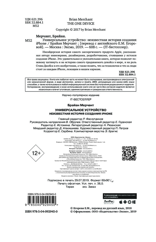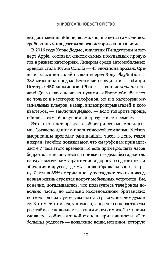Универсальное устройство. Неизвестная история создания iPhoneВ данный момент этот товар отсутствует в продаже. Возможно, у нас найдется аналогичный или похожий товар здесь. Серия: IT бестселлер Инсайдерская история самого засекреченного продукта Apple, рассказанная автору инженерами, дизайнерами, разработчиками, стоявшими у истоков создания iPhone. Это удивительная и увлекательная книга, которая позволит по-новому взглянуть и на историю самого продаваемого девайса в мире, и на роль Стива Джобса в его изобретении, а также понять, что за технологии и что за люди стоят за каждым iPhone, лежащим в нашем кармане. |
