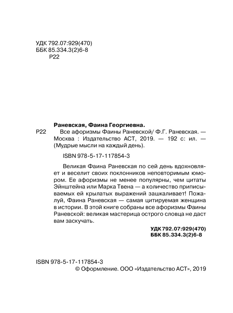 Все афоризмы Фаины Раневской+81 компактный формат крупный шрифт плотные страницы красивое оформление