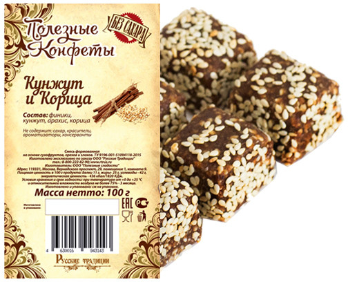 Русские традиции Конфеты полезные «Кунжут и корица»